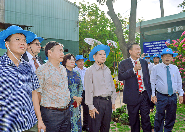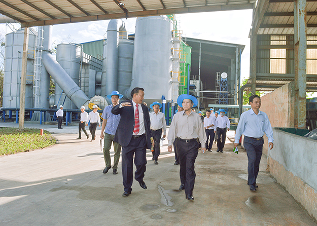 Photo 1: Mr. Nguyen Minh Triet –Former President of the Socialist Republic of Viet Nam and Ms. Phan Thi My Linh –Vice Minister of the MOC- and Mr. Tran Thanh Liem-Chairman of Binh Duong PPC-listened to the Project Employer reporting on progress implementation of the BIOGAS collection to generate project funded by the Finland Government.