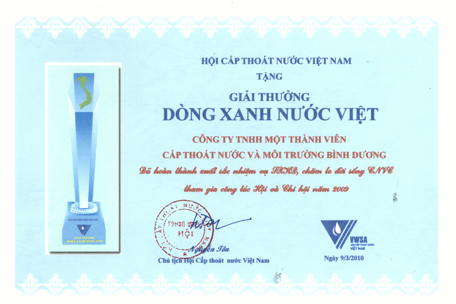 Nhận giải thưởng dòng xanh nước việt Hội cấp nước Việt Nam