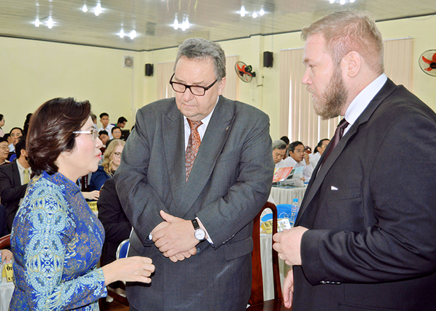 Photo 5: Ms. Phan Thi My Linh –Vice Minister of the MOC – talked to Mr. Kari Kahiluoto –Finland Ambassador in Viet Nam on results achieved on environmental field and supports from Finland Government at the inaguration ceremony