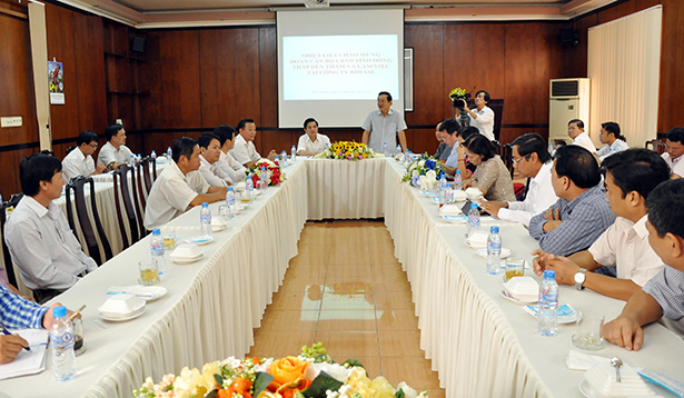 At the reception, Binh Duong representative provided Dong Thap mission with information on implementation of Thu Dau Mot sewerage collection and treatment project funded by Japanese Government. Especially, with new policy in management, BIWASE operate Thu Dau Mot Sewerage Treatment Plan, capacity of 17,600m3/day, this enalbles the company in effectively implementing the project.