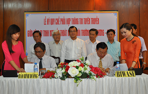 To improve community’s awareness on environment protection with topic “ Environment Protection and Community’s responsibility”, in the morning of June 23rd, 2016, a signing ceremony of regulation on propaganda-information cooperation between BIWASE and BINH DUONG NEWS was held at Binh Duong Water Supply Sewerage Environment Co., Ltd (BIWASE) . This regulation is made to introduce BIWAS’s brand,business activities as well as products to people. It also provides information on projects protecting the environment implemented by BIWASE to residents living in the projects areas.