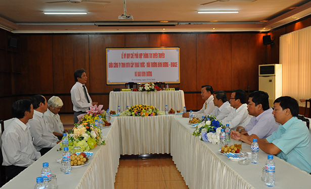 Mr. Nguyen Van Thien-President and General Director of BIWASE- and Mr. Nguyen QuangHiep- Member of Provincial Committee of the Party-Editorial Director of Binh Duong News- signed an Agreement on propaganda cooperation-in 2016-2017, with witness of officials from the two parties.