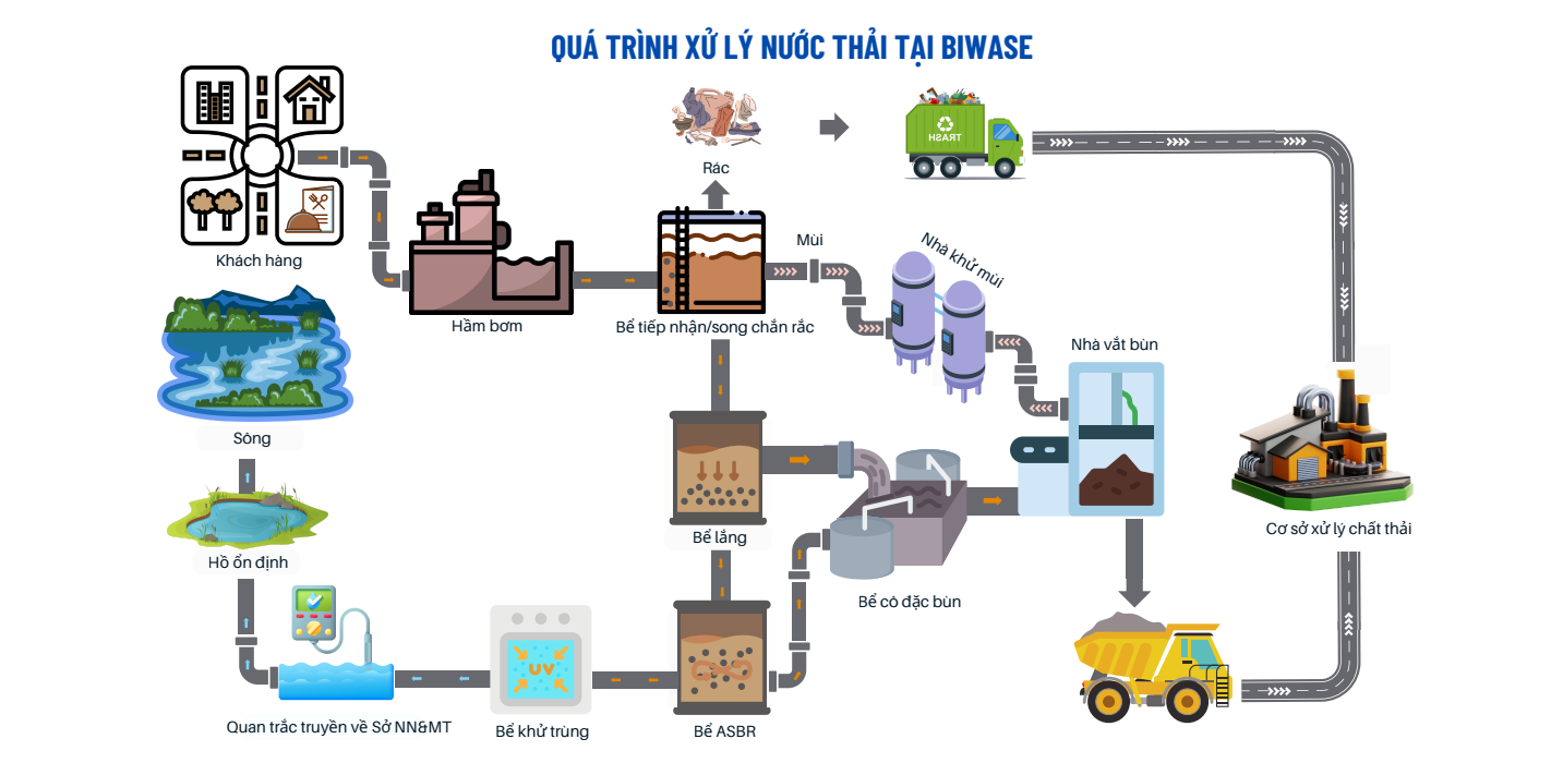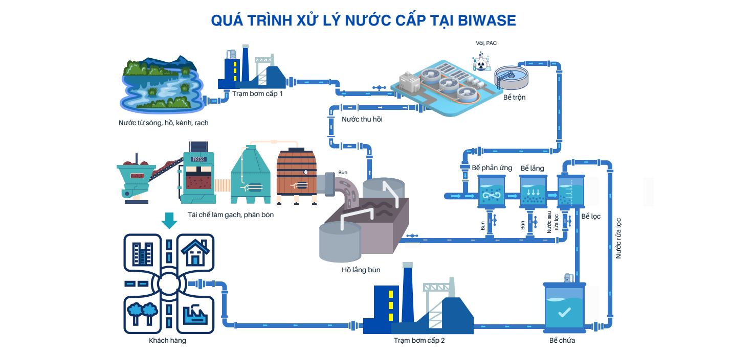 Trên hành trình đó, BIWASE tiên phong áp dụng mô hình kinh tế tuần hoàn, khai thác tài nguyên hiệu quả, giảm thiểu chất thải và tái sử dụng nguồn lực trong toàn bộ chuỗi hoạt động - từ cung cấp nước sạch, xử lý nước thải, đến quản lý và tái chế chất thải rắn. Mỗi bước đi của BIWASE là cam kết cho tương lai xanh của Bình Dương và Việt Nam.
