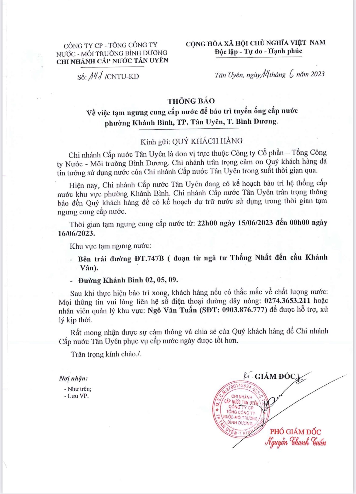 Tạm ngưng cấp nước khu vực Thuận An: tuyến ống cấp nước D400 đường Quốc Lộ 13, P.Bình Hòa