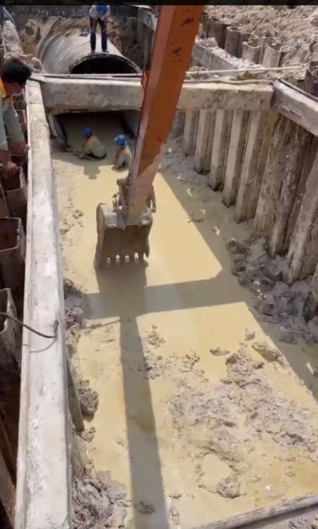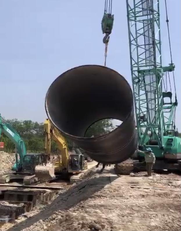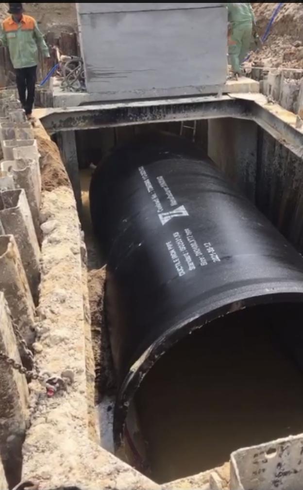 Sử dụng thiết bị hạng nặng thi công đường ống gang 2.500mm