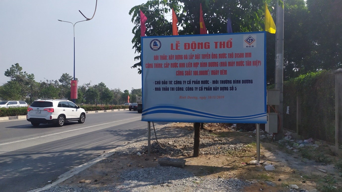 Ngày 15/2 Công ty cổ phần Nước – Môi trường Bình Dương đã làm lễ động thổ thực hiện gói thầu Xây dựng và lắp đặt máy móc công nghệ Nhà máy nước Tân Hiệp, công suất 100.000 m3/ngày đêm. Công trình này thuộc dự án đầu tư Cấp nước khu liên hợp Bình Dương. Thời gian thực hiện công trình theo hợp đồng là 9 tháng, tính từ ngày khởi công cho đến khi công trình hoàn thành đưa vào sử dụng; kể cả thứ bảy, chủ nhật và ngày lễ. Giá trị xây dựng gói thầu: 477.5 tỷ đồng.