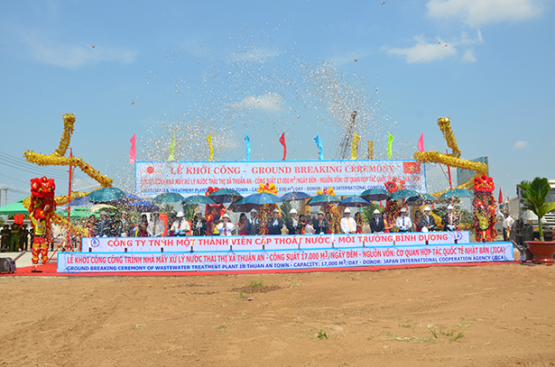(BDO) Sáng 6-3, Công ty TNHH MTV Cấp thoát nước Môi trường Bình Dương đã tổ chức lễ khởi công xây dựng Nhà máy xử lý nước thải sinh hoạt TX.Thuận An. Tham dự buổi lễ có ông Mai Thế Trung, Ủy viên Trung ương Đảng - Bí thư Tỉnh ủy; ông Trần Thanh Liêm, Phó Chủ tịch UBND tỉnh; ông Cao Lại Quang, Thứ trưởng Thường trực Bộ Xây dựng; ngài Katsuro Nagai, Công sứ phụ trách kinh tế Đại sứ quán Nhật Bản; đại diện Cơ quan hợp tác quốc tế Nhật bản Jaica…