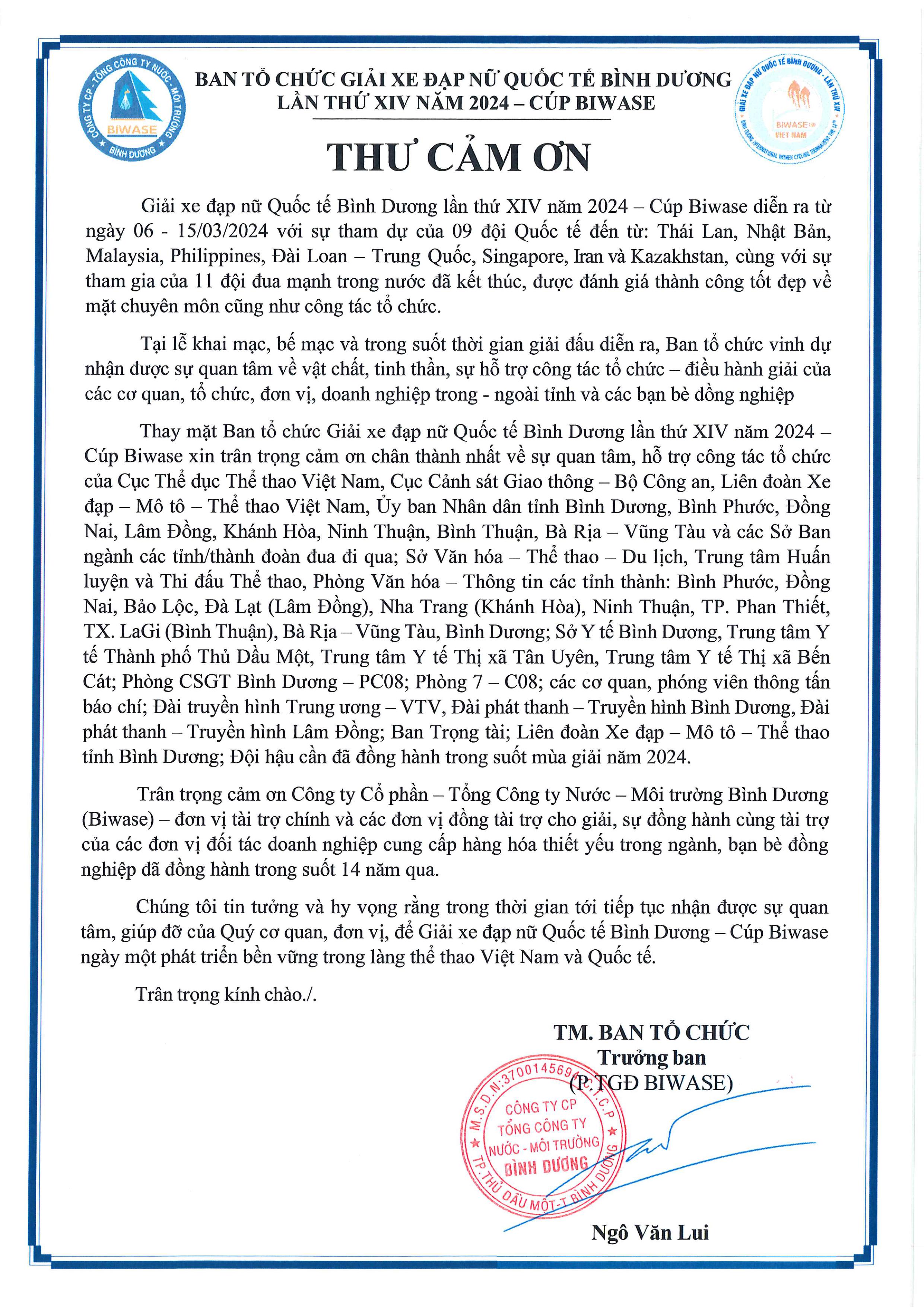 Lời cảm ơn từ Ban Tổ Chức BiwaseCup 2024
