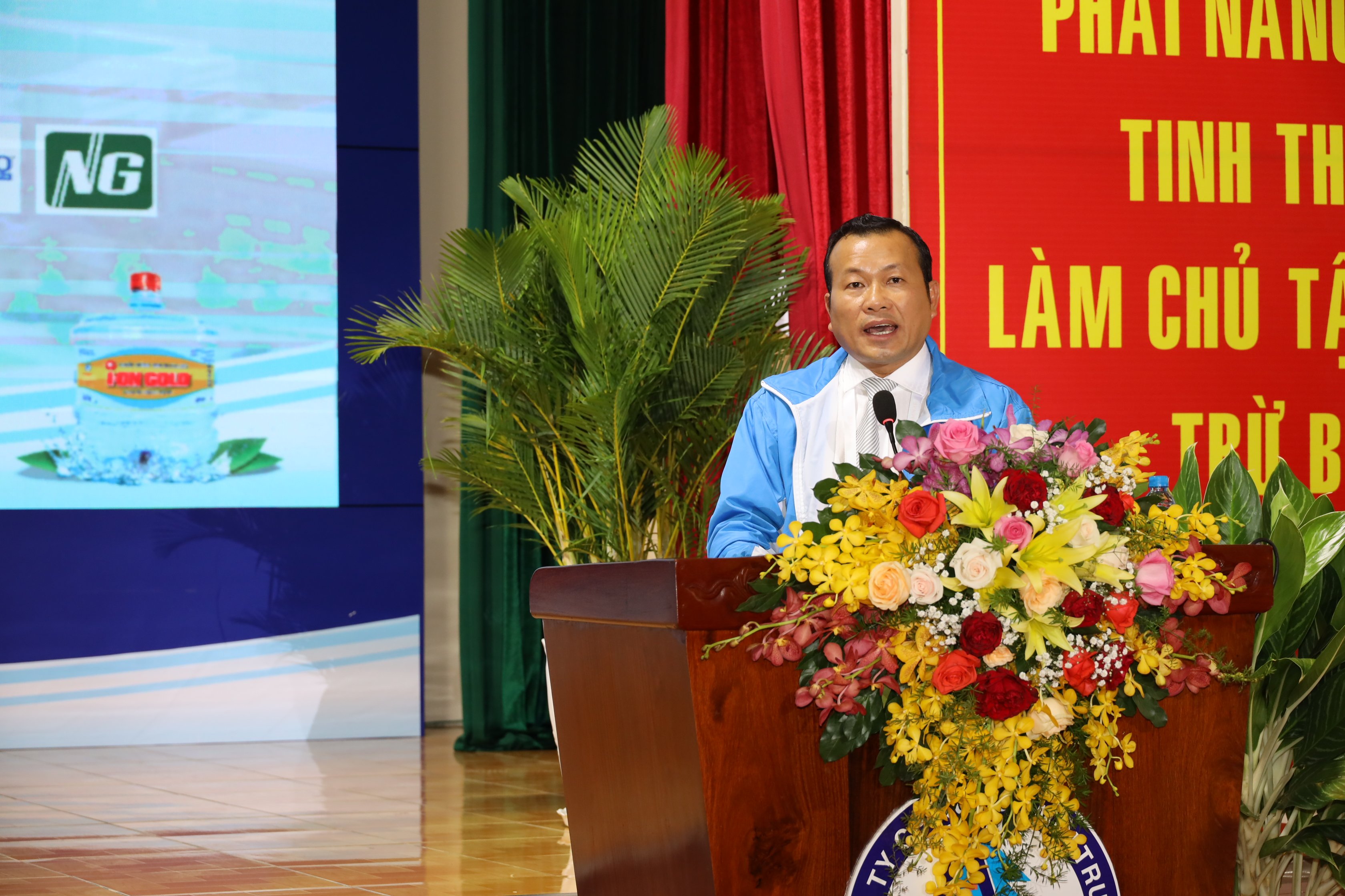 Ông Nguyễn Văn Thiền (Áo trắng caravat) Chủ tịch Hội đồng quản trị Công ty Biwase trao giải Áo Vàng Chung Cuộc cho vận động viên Nguyễn Thị Thu Mai