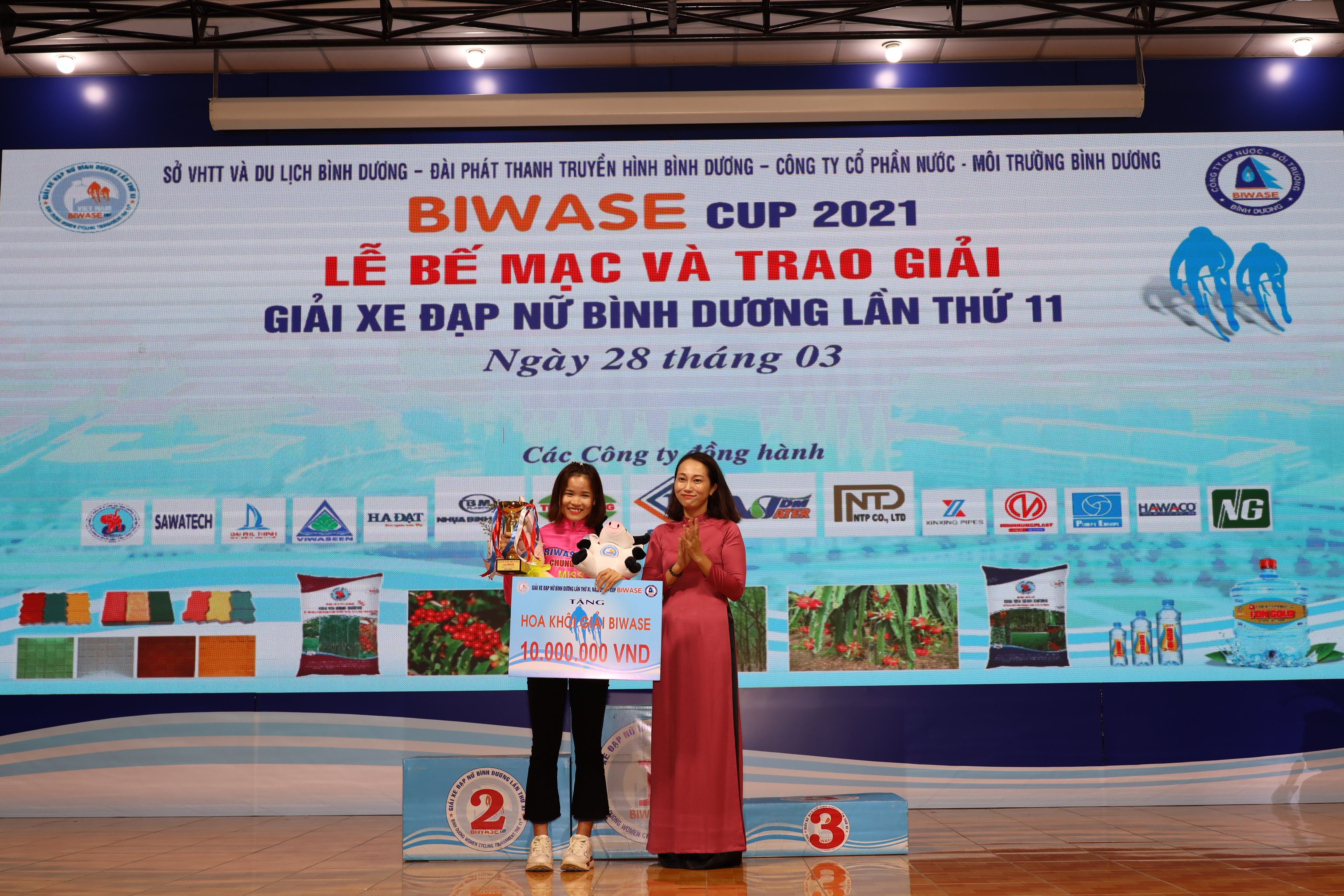 Trưa 28/3, chặng 10 Giải Xe đap nữ Bình Dương lần thứ XI năm 2021 từ Thành phố Vũng Tàu về Bình Dương, cự ly 120 km đã kết thúc và làm lễ trao giải tại Công ty cổ phần Nước – Môi trường Bình Dương (Biwase).