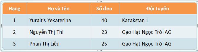 Giải xe đạp nữ quốc tế Bình Dương mở rộng lần thứ VII - Năm 2017: Kết quả giải dọc đường Sprint 1 chặng 5: TP.Nha Trang đi TP.Phan Rang-Tháp Chàm dài 105 km .