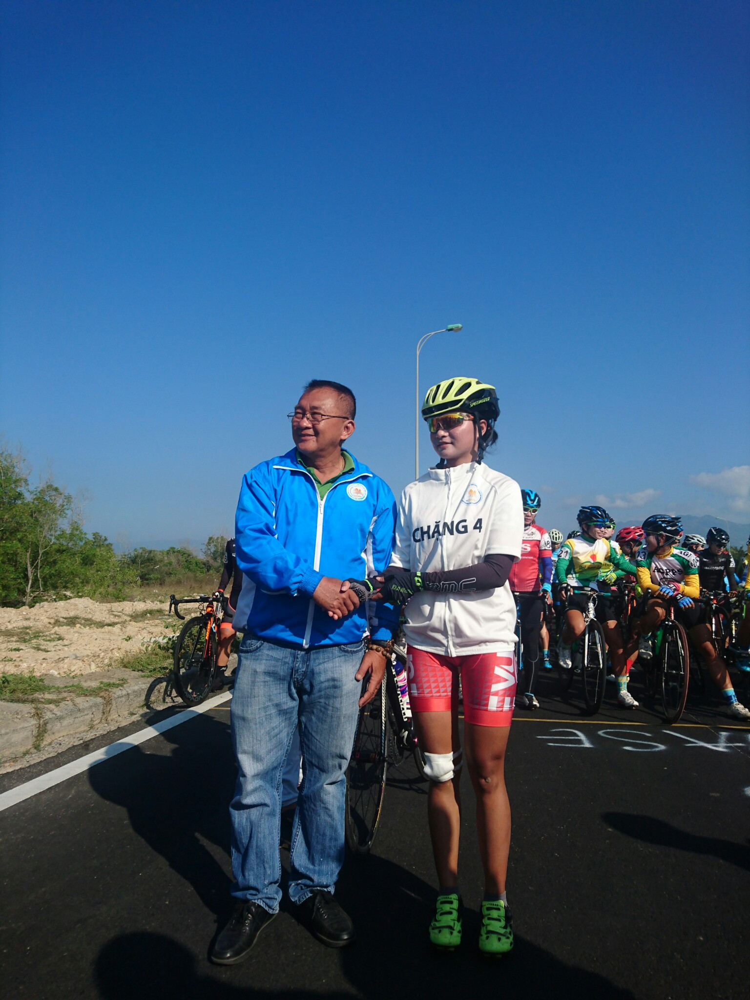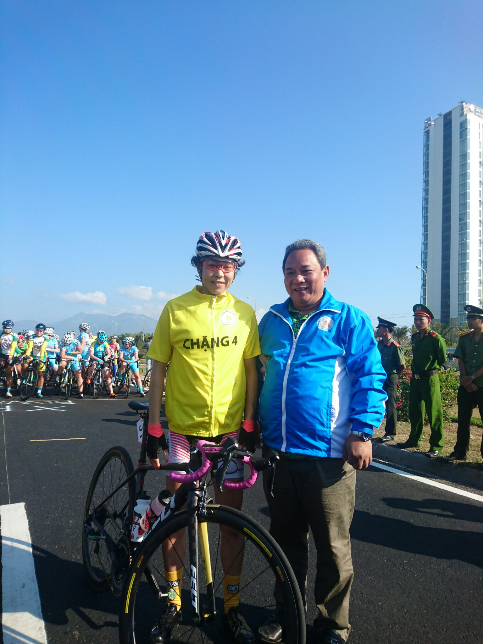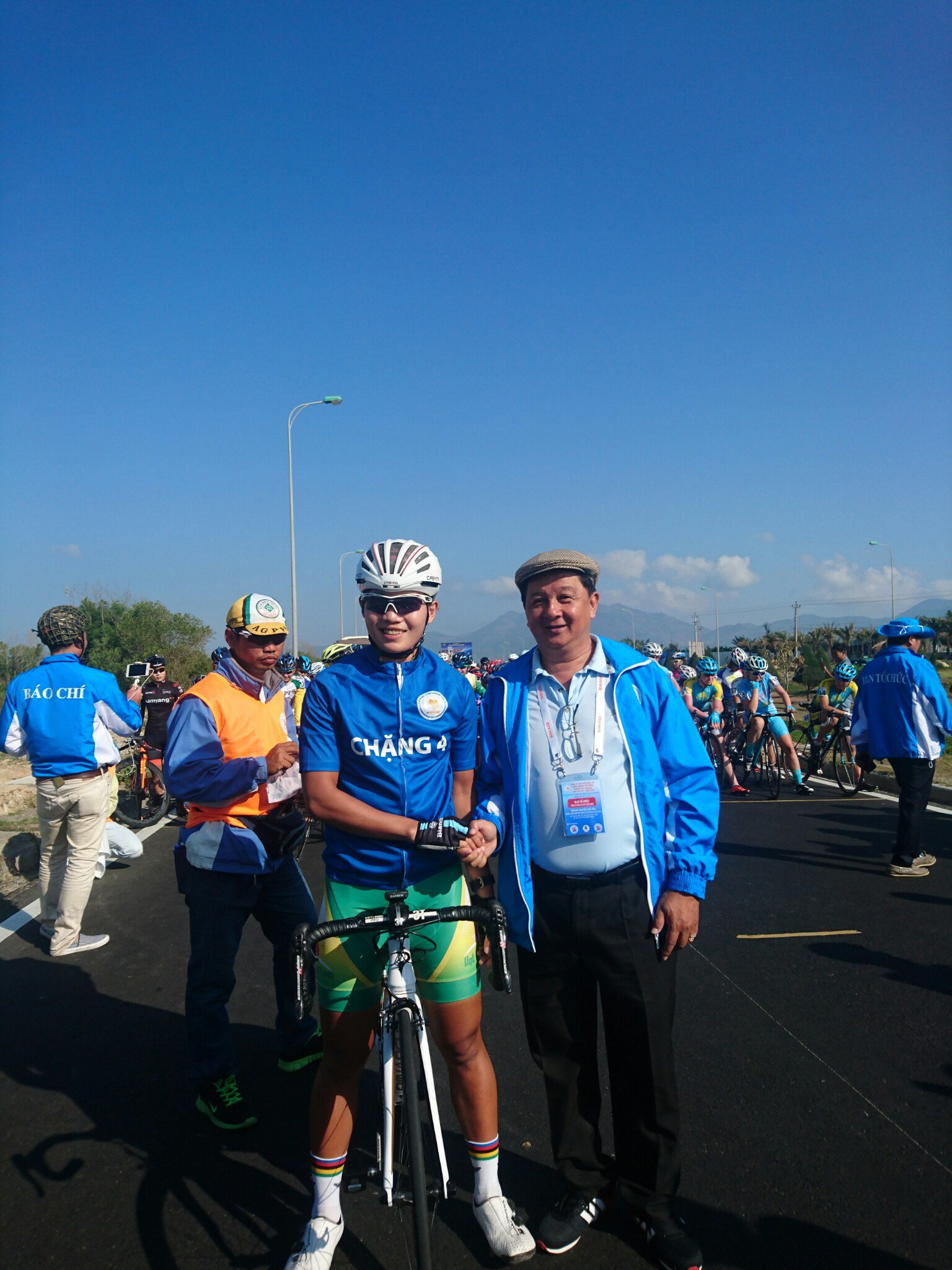 Trao các áo và chuẩn bị xuất phát Chặng 5: TP.Nha Trang đi TP.Phan Rang-Tháp Chàm dài 105 km.