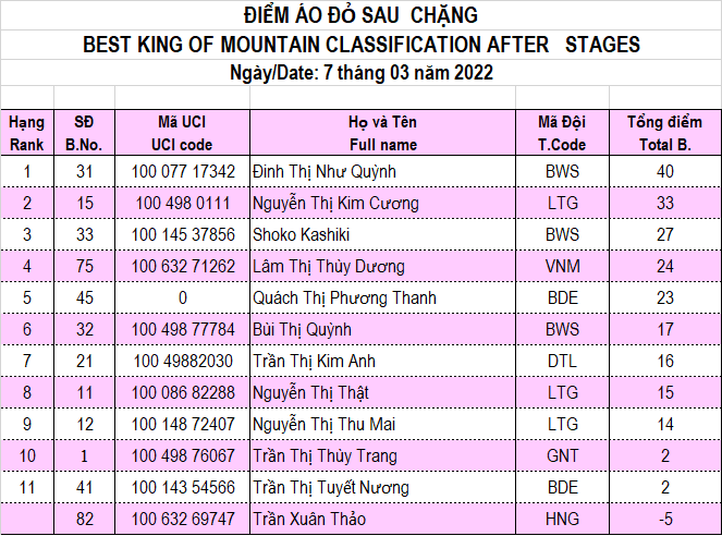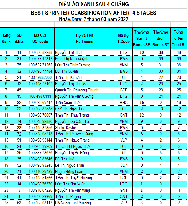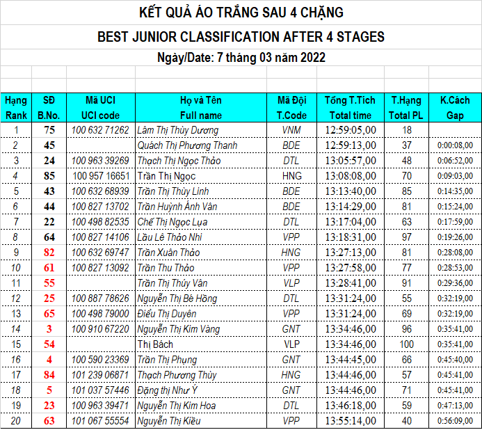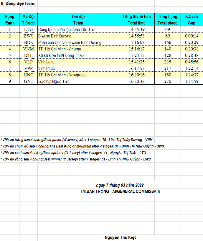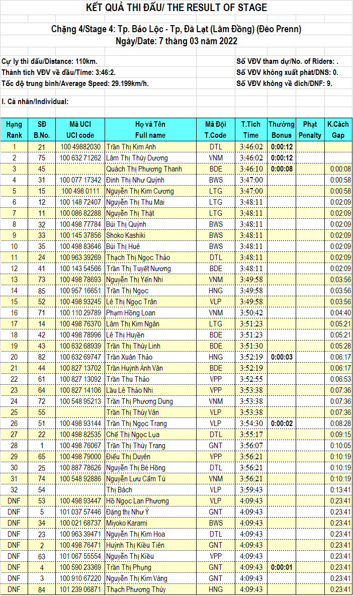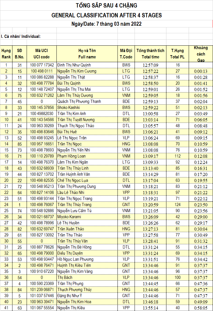 KẾT QUẢ CHẶNG 4 - GIẢI XE ĐẠP NỮ BÌNH DƯƠNG LẦN THỨ XII NĂM 2022 - CUP BIWASE