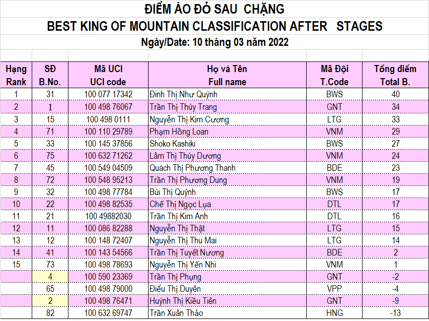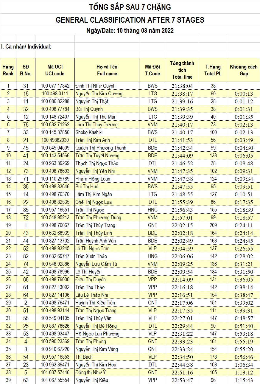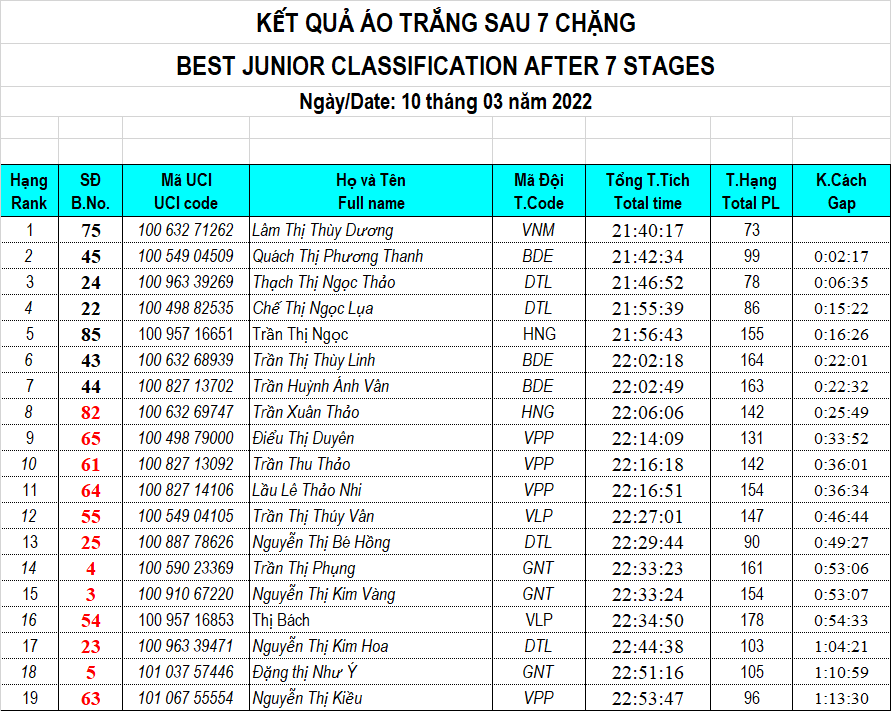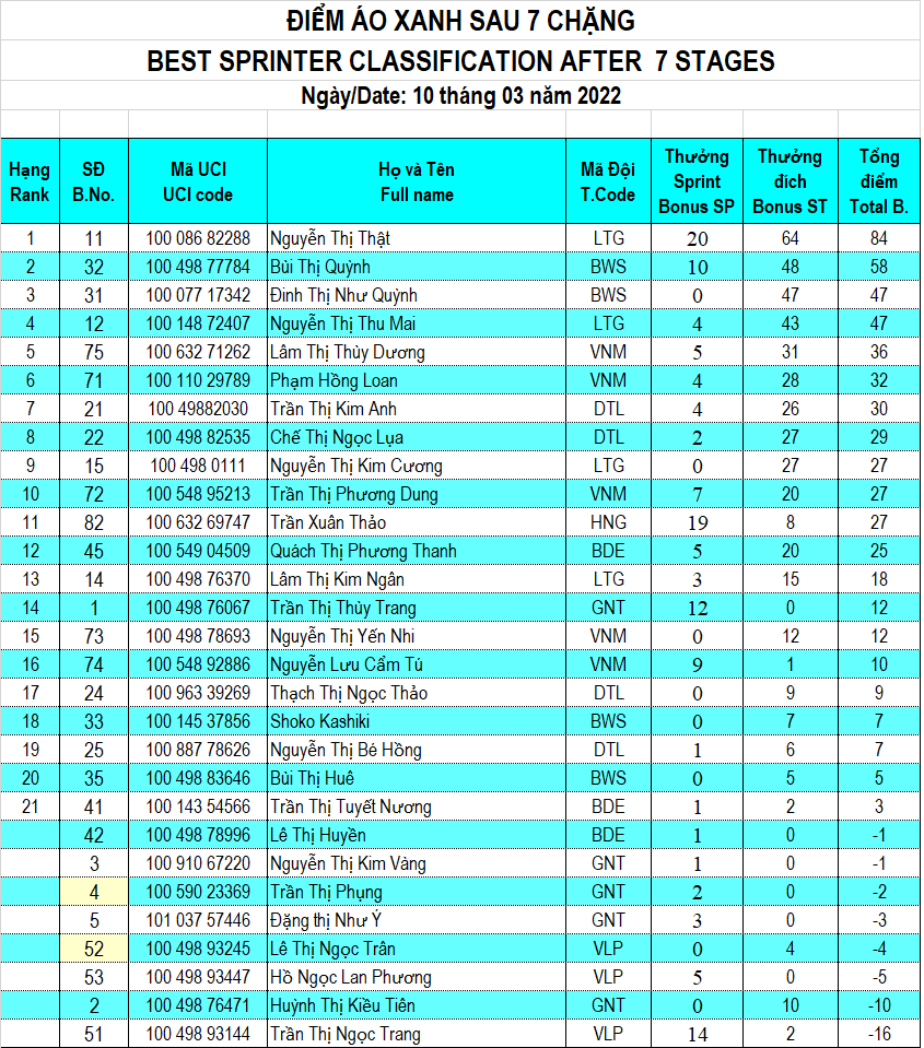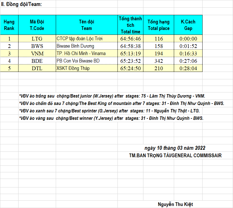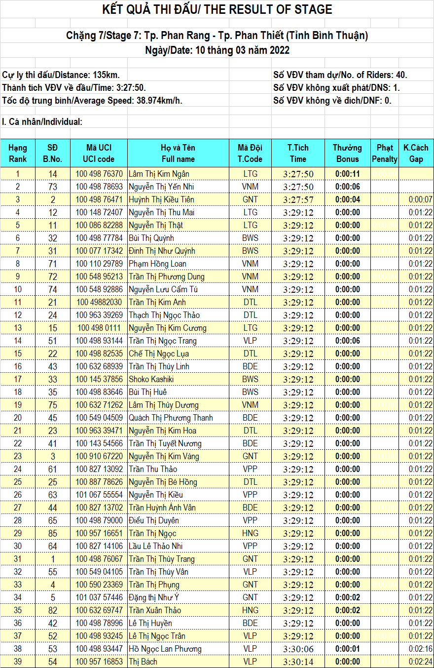 KẾT QUẢ CHẶNG 7 - GIẢI XE ĐẠP NỮ BÌNH DƯƠNG LẦN THỨ XII NĂM 2022 - CUP BIWASE