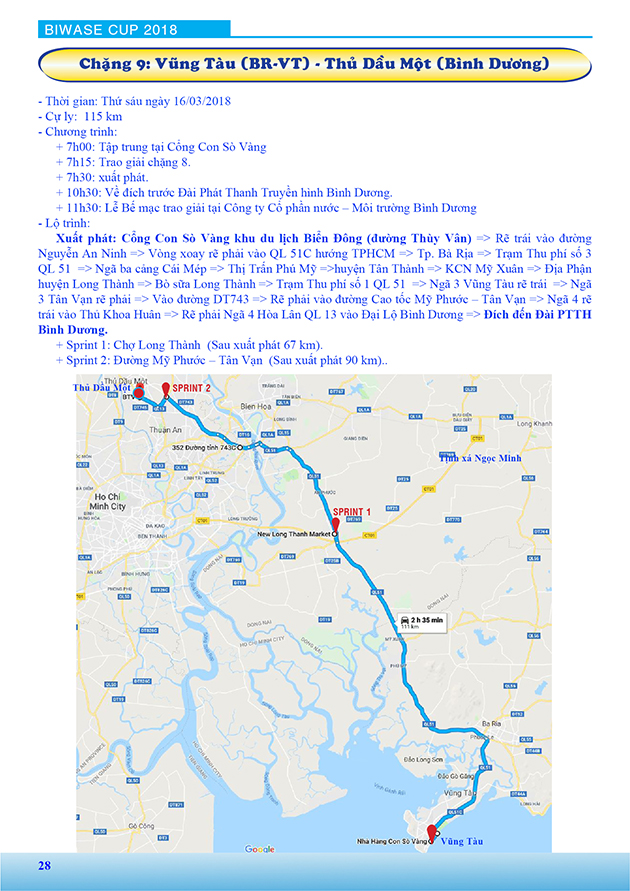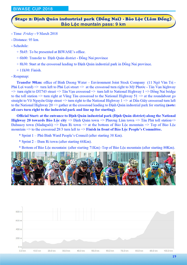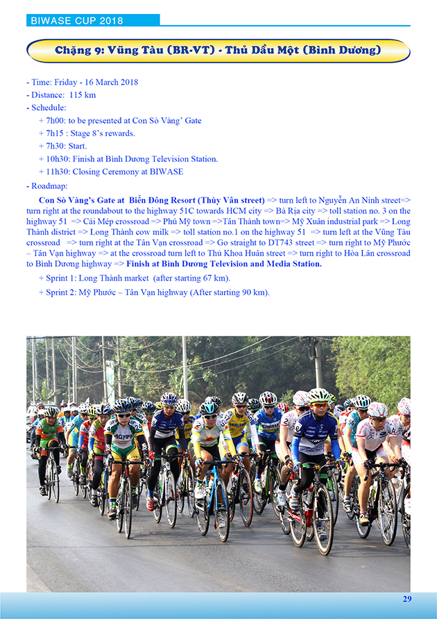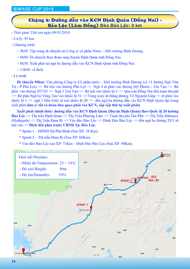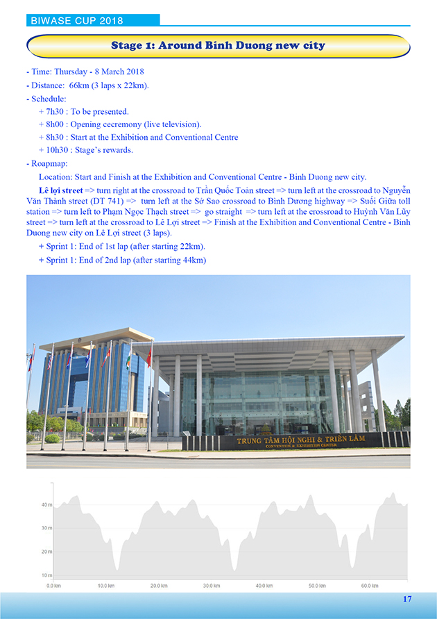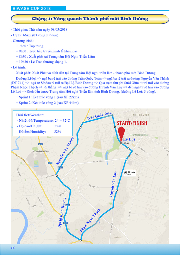 Lộ trình Giải xe đạp nữ Quốc tế Bình Dương mở rộng tranh cúp BIWASE lần thứ VIII - Năm 2018