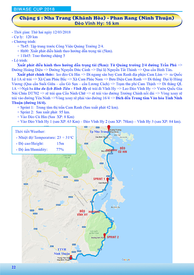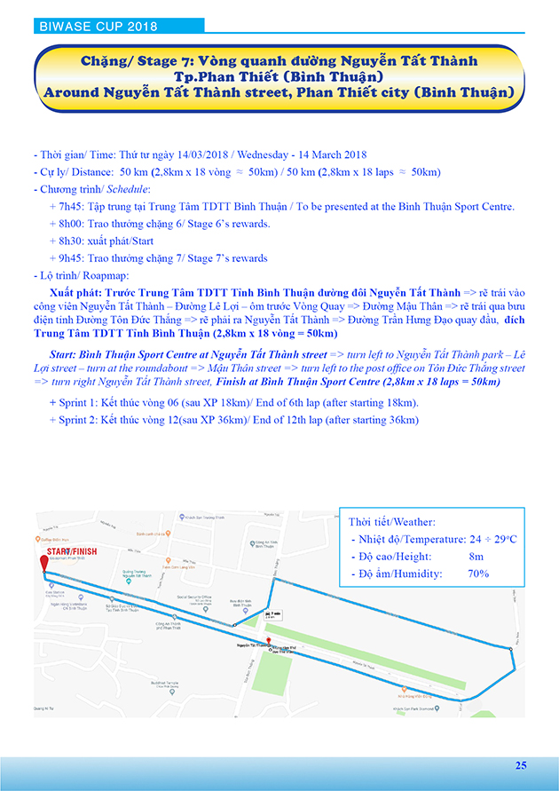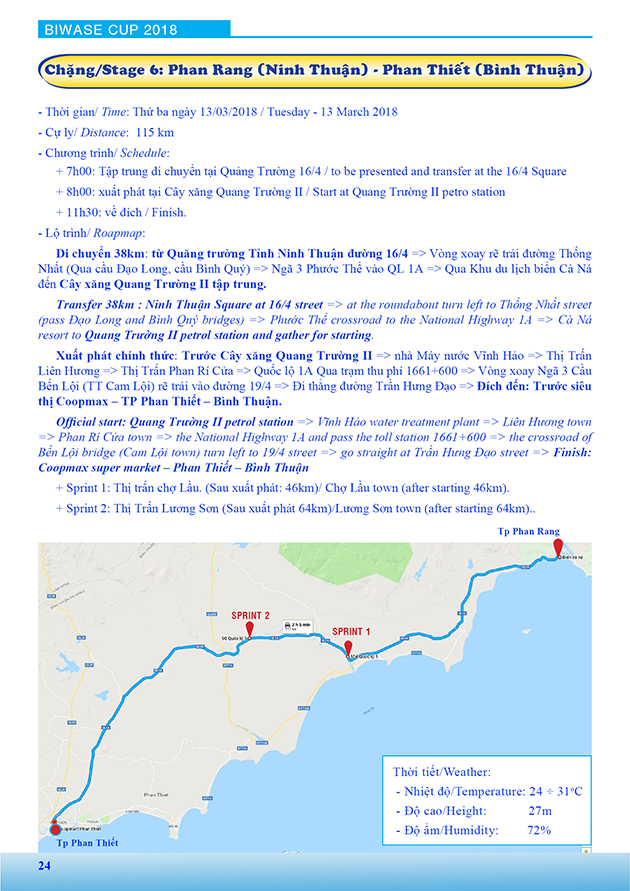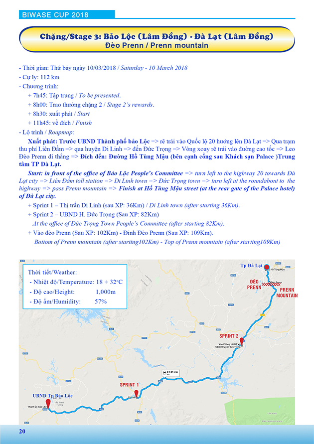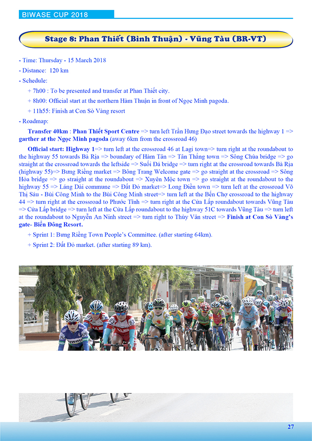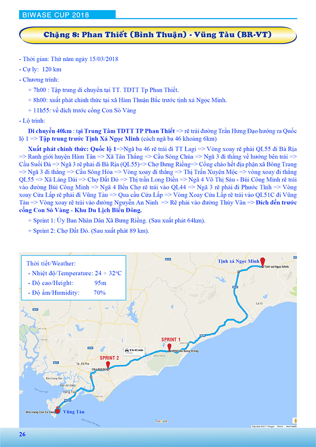 Lộ trình Giải xe đạp nữ Quốc tế Bình Dương mở rộng tranh cúp BIWASE lần thứ VIII - Năm 2018