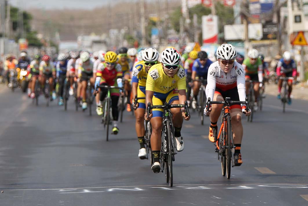 lúc nầy khi vào hơn nữa đèo đoàn đua bắt đầu chia thành nhiều tốp, áo vàng Jutatip rới lại tốp 5 cách tốp đầu hơn 5 phút.