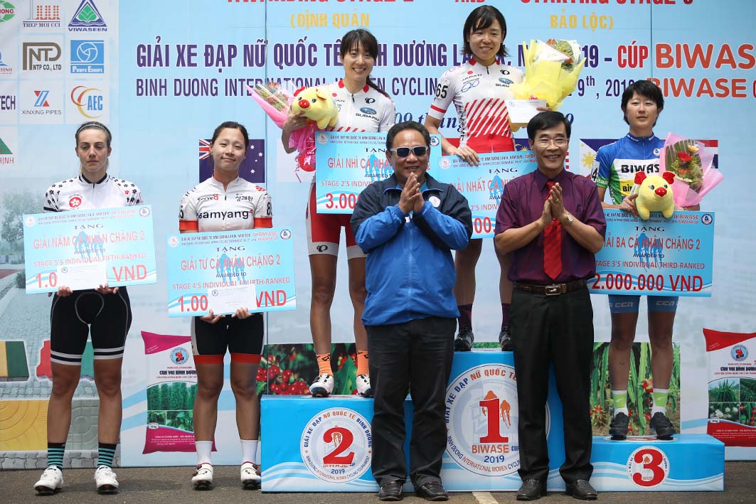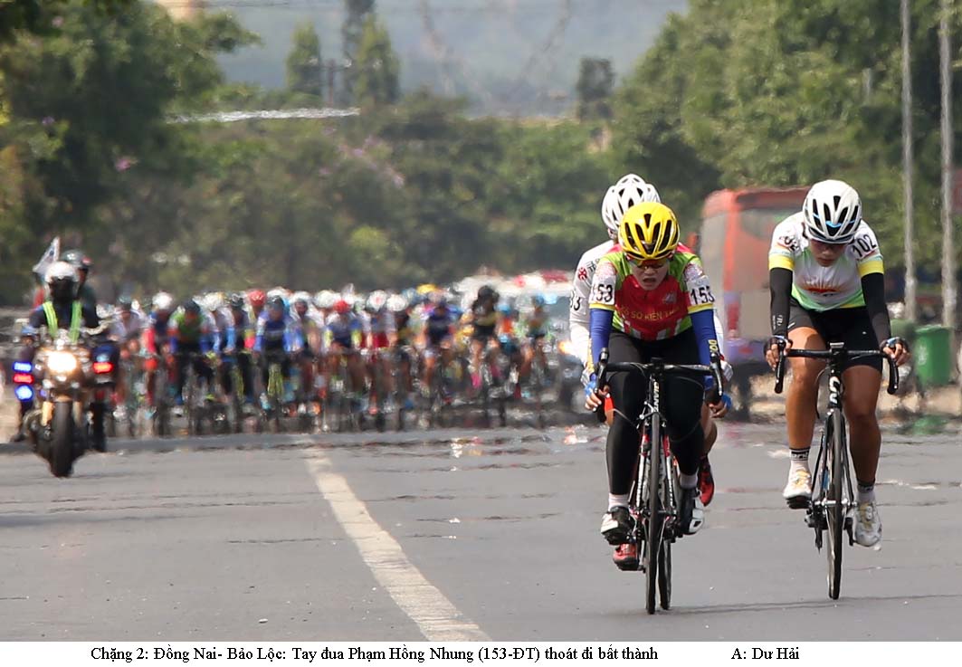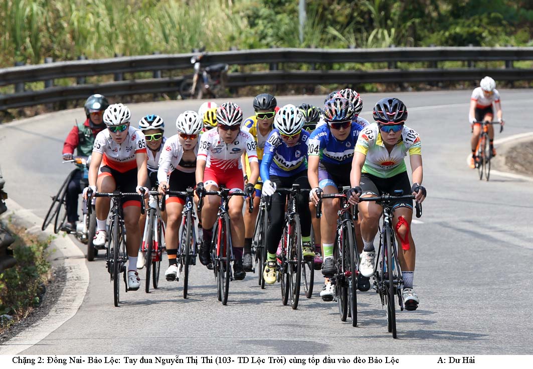 Vào đến chân đèo Bảo Lộc đoàn đua nhập thành tốp đông, các tay đua có sở trường leo đèo bắt đầu tăng tốc, một tốp đông gồm có Kashiki Shoko, Kaneko Hiromi (Japan), Son Eunju, Kim Nyoen (Samyang), Đinh Thị Như Quỳnh, Makisa (Biwase), Arianna Fidanza (High Ambition Inter Japan), Nguyễn Thị Thi, Nguyễn Thị Mai (Lộc Trời) thoát ra tạo khoảng cách hơn 20 giây, với tốp sau,