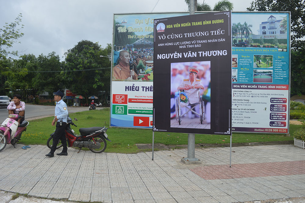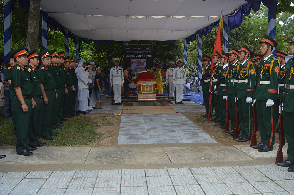 Nghi lễ an táng của Thiếu tá tình báo, Anh hùng lực lượng vũ trang nhân dân Nguyễn Văn Thương diễn ra hết sức trang trọng, theo đúng nghi thức quan đội. Được biết, anh hùng LLVTND Nguyễn Văn Thương tham gia cách mạng từ tháng 5/1959. Trong giai đoạn 1959 - 1969, ông được giao nhiệm vụ giao liên tình báo ở khu vực Sài Gòn - Bến Cát - Bình Dương. Năm 1961, ông được phân công phụ trách làm công tác bảo vệ cho nguyên Thủ tướng Võ Văn Kiệt, lúc đó là Bí thư Thành ủy T4 Sài Gòn - Gia Định và tham gia hoạt động trong Ban Tình báo khu Sài Gòn - Chợ Lớn. Năm 1969, ông bị địch bắt. Sau nhiều lần tra khảo, mua chuộc không thành, ông đã bị 6 lần cưa chân. Năm 1973, sau Hiệp định Paris, ông mới được trở về đoàn tụ với gia đình. Với sự kiên trung, bất khuất và thành tích trong đấu tranh kháng chiến cứu nước, Thiếu tá tình báo Nguyễn Văn Thương được Nhà nước phong tặng Huân chương chiến công giải phóng hạng Nhất; hạng 3; 14 lần đạt danh hiệu dũng sĩ diệt Mỹ và được Chủ tịch nước phong tặng danh hiệu Anh hùng lực lượng vũ trang nhân dân vào năm 1978. Ông ra đi trong sự tiếc thương vô hạn của gia đình, đồng đội và nhiều cán bộ kháng chiến qua các thời kỳ. Tri ân nghĩa cử của ông với đất nước, Biwase đã dành tặng 2 mộ phần, tạc tượng lúc hoạt động tình báo và hỗ trợ an táng miễn phí cho gia đình ông/.