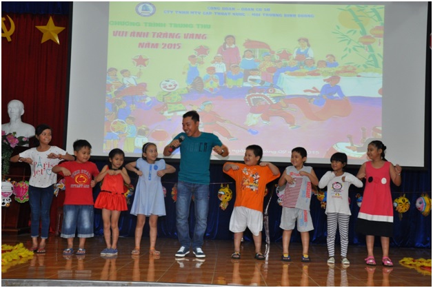 Hòa cùng không khí rộn rã của mùa Trung thu năm nay, vừa qua Công Đoàn và Đoàn cơ sở Công ty TNHH MTV Cấp thoát nước Môi trường Bình Dương đã tổ chức một chương trình trung thu ấn tượng “Vui Ánh Trăng Vàng” năm 2015. Với mong muốn tạo được sân chơi để các em có dịp giao lưu vui vẻ và đầy ý nghĩa, chương trình đã thu hút được sự tham gia của đông đảo trẻ em, thiếu nhi là con em của công nhân viên công ty.