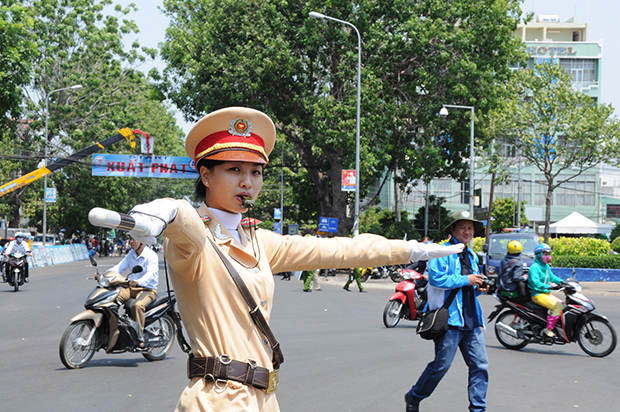 Lực lượng CSGT đang làm nhiệm vụ đảm bảo an toàn cho đoàn đua
