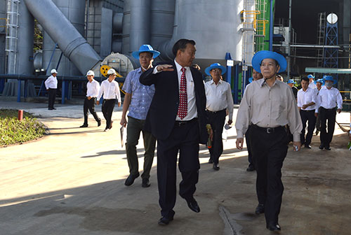 Nguyên Chủ tịch nước Nguyễn Minh Triết tham quan quy trình xử lý chất thải nguy hại, thu hồi nhiệt và sản xuất vật liệu xây dựng từ rác tại Khu liên hợp xử lý chất thải Bình Dương (Xí nghiệp Xử lý rác thải, Công ty Cổ phần Nước - Môi trường Bình Dương). Ảnh: P.V