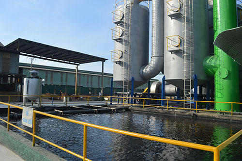 Bể hoàn lưu thuộc Cụm xử lý chất thải nguy hại. Than, tro sau khi đốt được dùng làm phụ gia sản xuất gạch và vật liệu xây dựng, nhiệt phát sinh từ quá trình đốt chất thải nguy hại được thu hồi, sử dụng cho quá trình hấp, sấy khô gạch. Ảnh: P.V