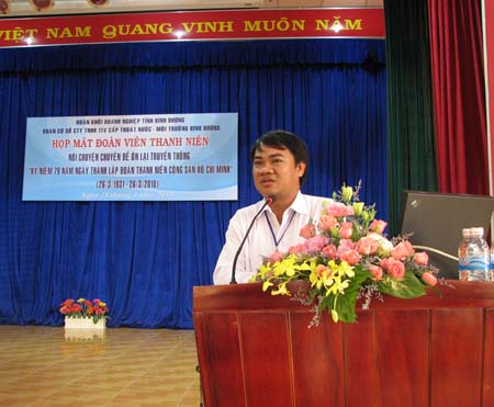 Sáng ngày 25/03 Đoàn cơ sở Công ty Cấp Thoát Nước - Môi Trường Bình Dương (BIWASE) đã tổ chức lễ mitting truyên truyền kỷ niệm 79 năm ngày thành lập Đoàn TNCS Hồ Chí Minh do Thầy Nguyễn Chua - Đoàn trường Lý Tự Trọng diễn thuyết với sự tham gia của trên 200 đoàn viên tiêu biểu về tham dự.