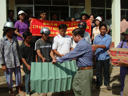 Sáng ngày 12/11/2009, đoàn cứu trợ đại diện CBCNV Công ty TNHH 1 Thành viên Cấp thoát nước – Môi trường Bình Dương (Biwase) mang theo tôn, kẽm, mì gói, quần áo cũ đến Tỉnh Phú Yên cứu trợ cho bà con bị thiệt hại mất trắng nhà cửa do cơn bão số 11 vừa qua (tên quốc tế Mirinae) gồm 30 suất tổng giá trị 122 triệu đồng, mỗi xuất gồm có 10 tấm tôn, 5 tấm xốc nóc, 1 kg kẽm, 01 thùng mì.