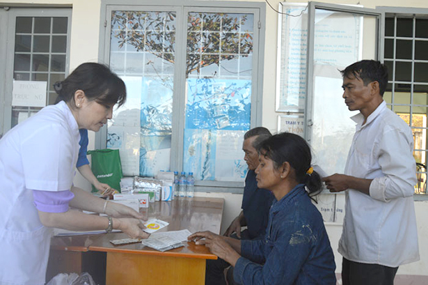 | Cán bộ y tế Bệnh viện đa khoa tỉnh khám, cấp thuốc miễn phí cho đồng bào nghèo xã Phước Thiện và xã Hưng Phước, huyện Bù Đốp, tỉnh Bình Phước |