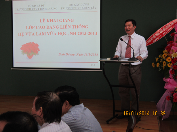 Thực hiện theo kế hoạch đào tạo năm 2014, ngày 16/01/2014 Trung tâm dạy nghề và nâng cao nguồn nhân lực trực thuộc Công ty TNHH MTV Cấp thoát nước Môi trường Bình Dương đã tổ chức lễ khai giảng lớp Cao đẳng liên thông chuyên ngành cấp thoát nước. Lễ khai giảng được tổ chức trang trọng tại cơ sở 2 trường Đại học Kinh tế Kỹ thuật Bình Dương.