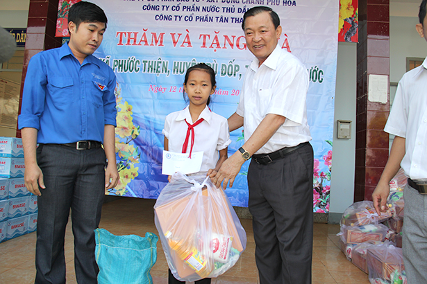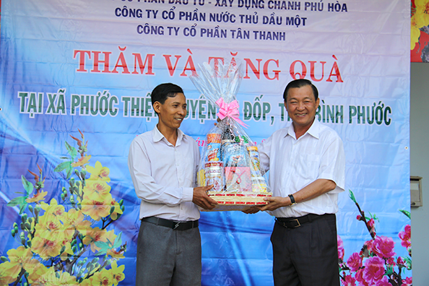 Nhằm giúp cho bà con nghèo hộ nghèo, gia đình chính sách tại xã Phước Thiện, huyện Bù Đốp, tỉnh Bình Phước có một cái tết cổ truyền tươm tất, vừa ấm áp, Đoàn thanh niên Công ty TNHH một thành viên Cấp thoát nước Môi trường Bình Dương (BIWASE) phối hợp cùng Đoàn thanh niên Công ty cổ phần ĐTXD Chánh Phú Hòa, Công ty cổ phần Nước Thủ Dầu Một và Công ty cổ phần Tân Thanh tổ chức chương trình tặng quà cho bà con nghèo, gia đình chính sách và các chiến sĩ tại đồn biên phòng Đắc Quýt, Đồn biên phòng cửa khẩu Hoàng Diệu, tỉnh Bình Phước vào ngày 12/02/2015.