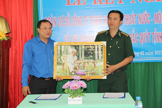 Đoàn cơ sở Công ty TNHH MTV Cấp thoát nước – Môi trường Bình Dương (BIWASE) tổ chức lễ kết nghĩa với Chi đoàn cơ sở Đồn biên phòng Đắc Quýt tỉnh Bình Phước. Hai đơn vị phối hợp xây dựng chương trình hành động theo Chủ đề “Đoàn viên thanh niên BIWASE-Đồn biên phòng Đắc Quýt hành động vì biên cương Tổ Quốc”. Thực hiện công trình thanh niên “Xây dựng sân chào cờ cột mốc số 63 bao gồm đường đi” với diện tích hơn 30m2, giá trị ước tính 25 triệu đồng và nhận đỡ đầu 1 em học sinh nghèo của xã với giá trị hỗ trợ 500.000 đồng/tháng.