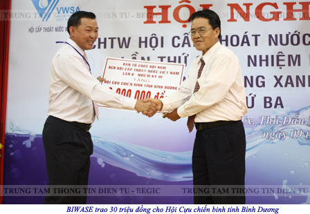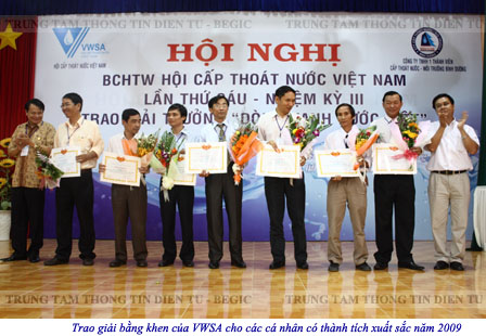 Tại Hội nghị, BCHTW VWSA đã chọn các đại biểu tham dự Đại hội Chi hội cấp nước miền Nam và Hội thao của Chi hội cấp nước phía Nam tại Vũng Tàu diễn ra từ ngày 10/03 đến 13/03/2010. Nhân dịp này, BCHTW VWSA trao giải thưởng “Dòng xanh nước Việt” cho Công ty TNHH một thành viên Cấp thoát nước – Môi trường Bình Dương và 15 đơn vị, cá nhân; đồng thời trao bằng khen của VWSA cho các tập thể, cá nhân có thành tích xuất sắc trong năm 2009. Bên cạnh đó, BIWASE trao 30 triệu đồng cho Hội Cựu chiến binh Việt Nam tỉnh Bình Dương để giúp đỡ các Cựu chiến binh gặp khó khăn.
