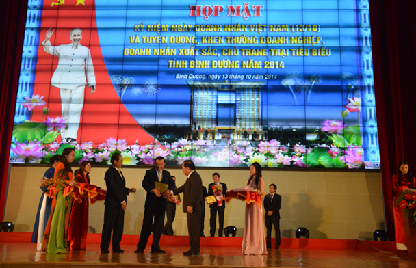 Chiều ngày 13/10/2014, tại Trung tâm Hội nghị và Triển lãm, Trung tâm Hành chính tập trung của tỉnh, UBND tỉnh Bình Dương đã tổ chức lễ kỷ niệm Ngày Doanh nhân Việt Nam 13-10 và tuyên dương những doanh nghiệp và cá nhân tiêu biểu đã có nhiều cống hiến vào sự phát triển kinh tế, xã hội của tỉnh Nhà.