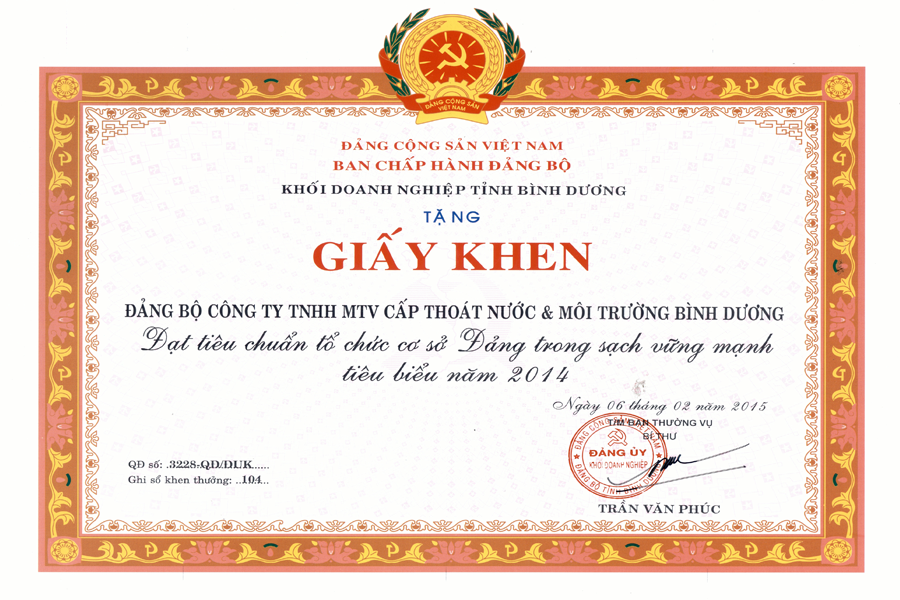 Đạt tiêu chuẩn tổ chức cơ sở Đảng trong sạch vững mạnh tiêu biểu năm 2014